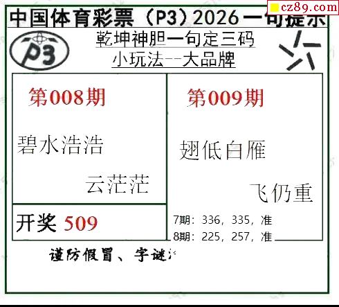 > 乾坤一句定三码26年009期P3图谜